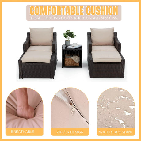 Outdoor 5 Piece Patio Wicker Furniture Set