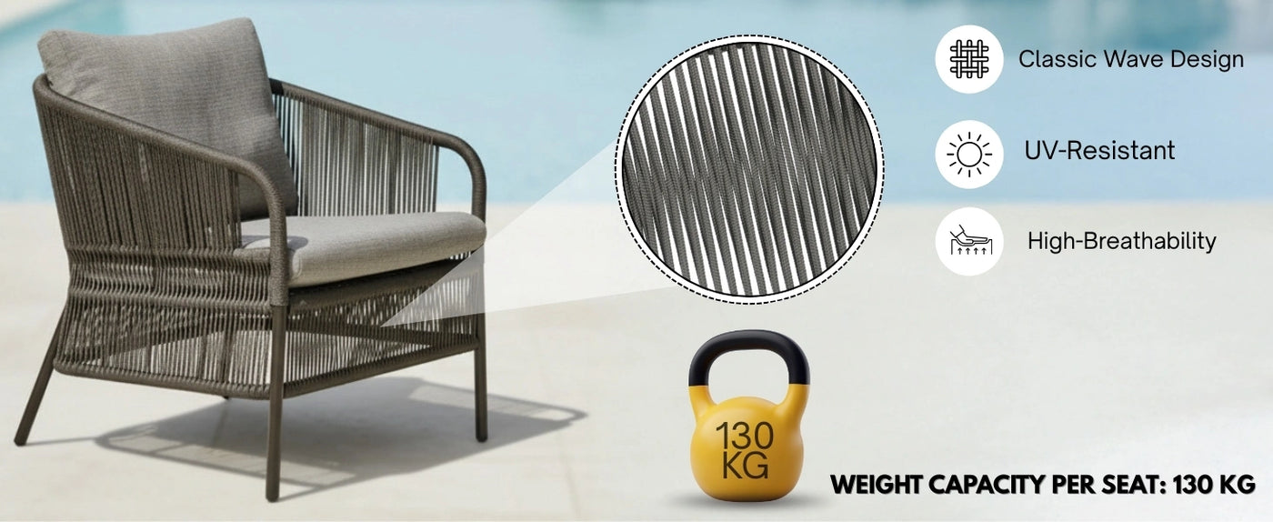• Durable Rope Weave & Metal Frame : Handwoven weather-resistant rope paired with a strong powder-coated metal frame ensures long-lasting performance indoors and outdoors.
