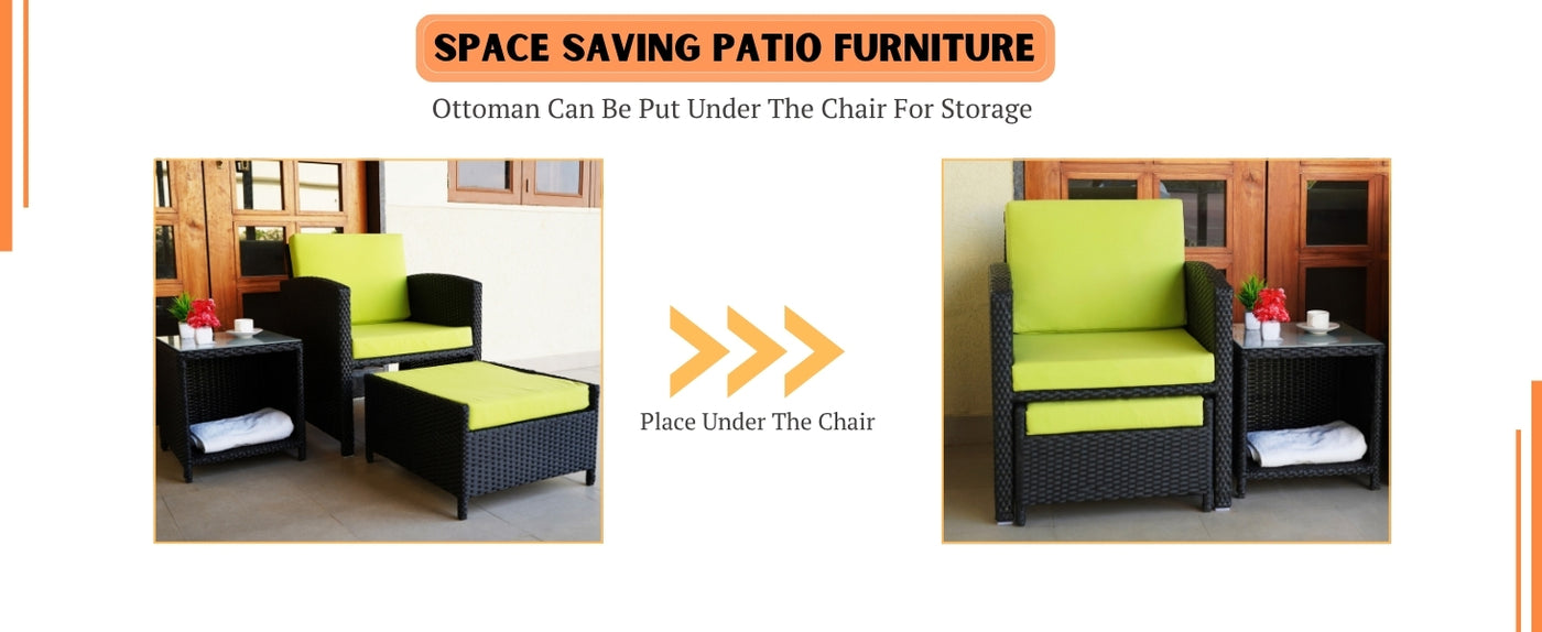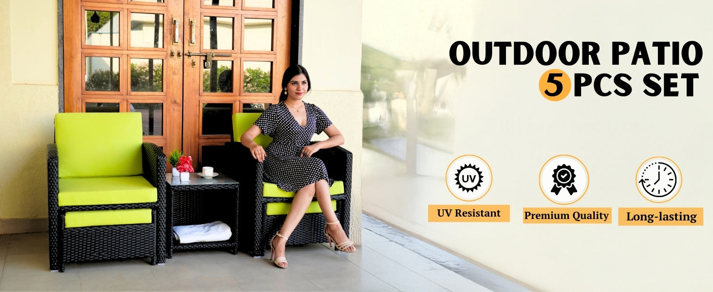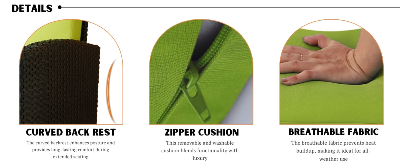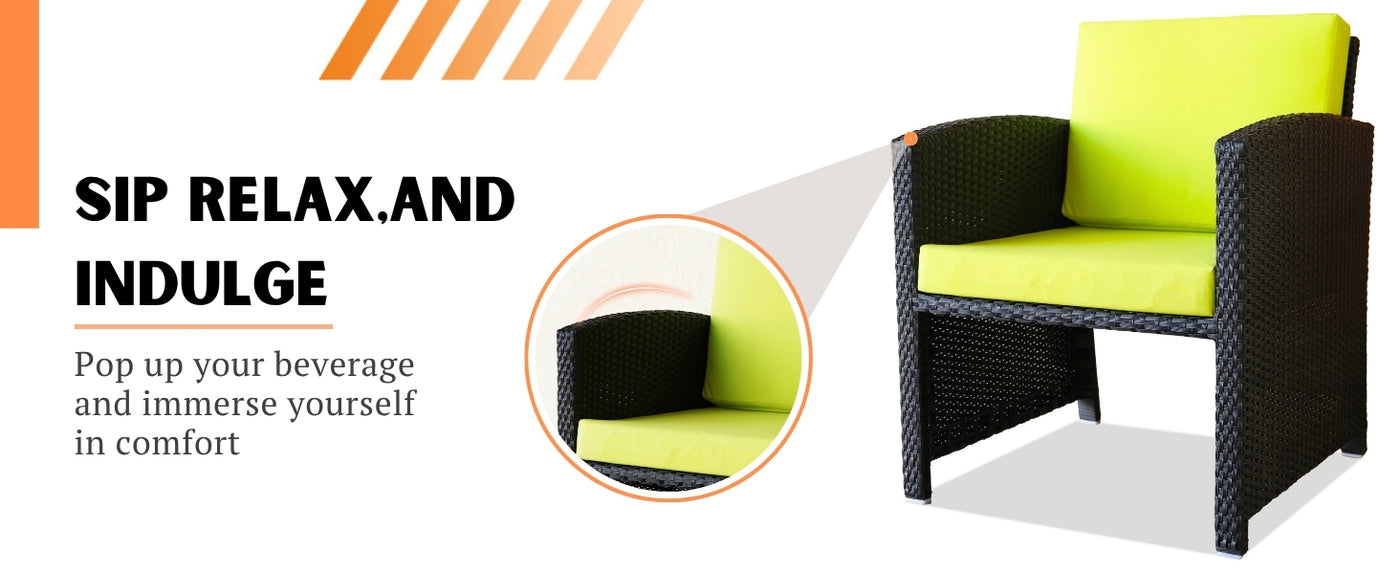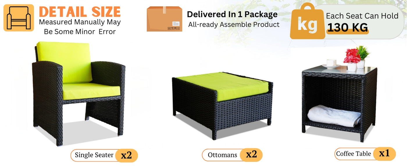 - Comfortable Water Resistant Cushions : Comes with thick, soft, and supportive cushions in elegant black & light green, featuring water-resistant covers that are removable and easy to wash for stress-free maintenance.