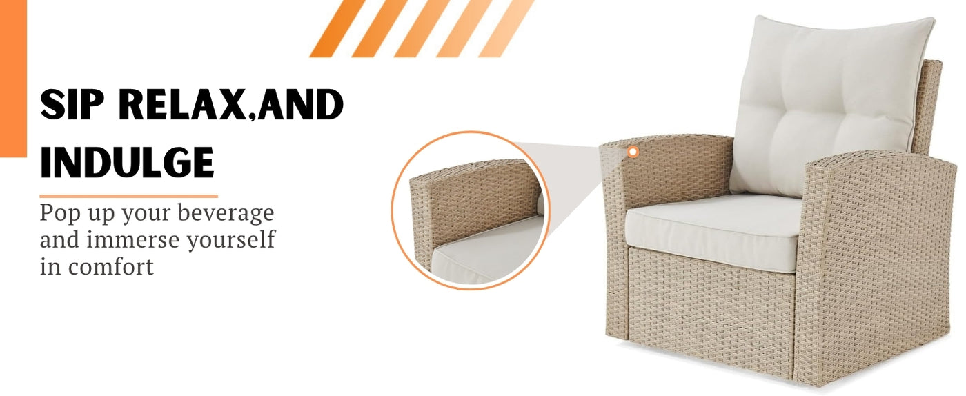 - Stylish Contrast & Neutral Tones : Beige wicker pairs beautifully with cream cushions, blending well with natural surroundings or modern patio themes. Versatile look complements wood decks, tiled porches, or stone patios.