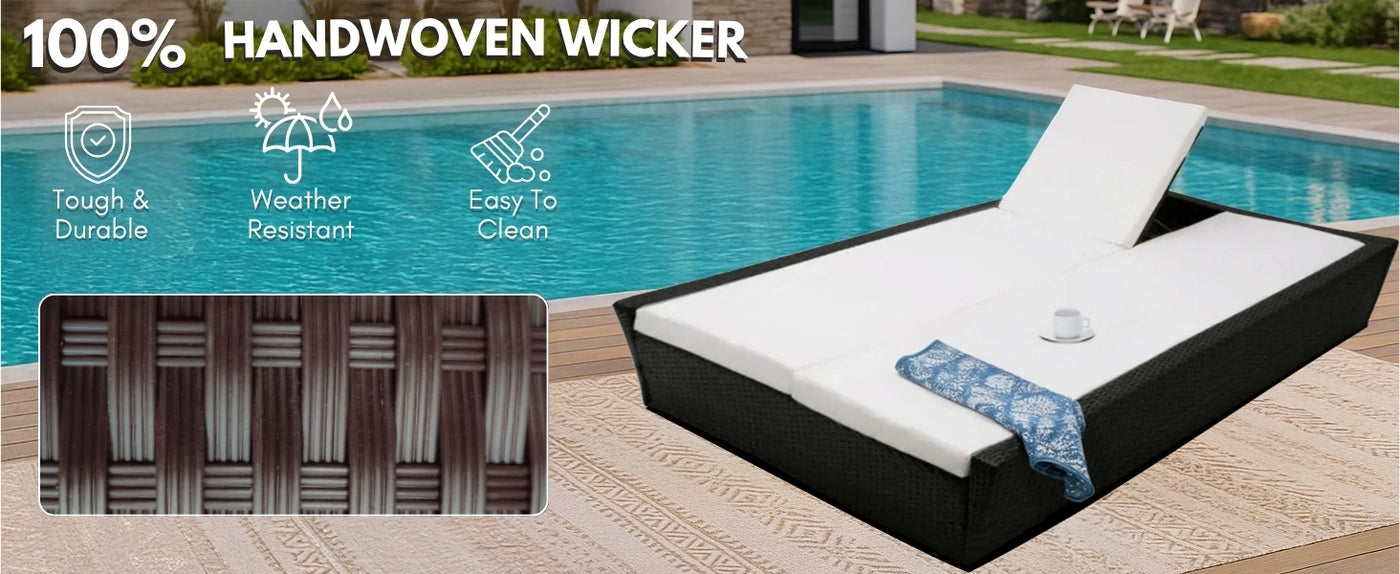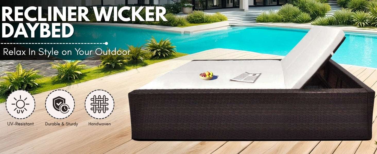 Outdoor Wicker Patio Double Seater Recliner Daybed