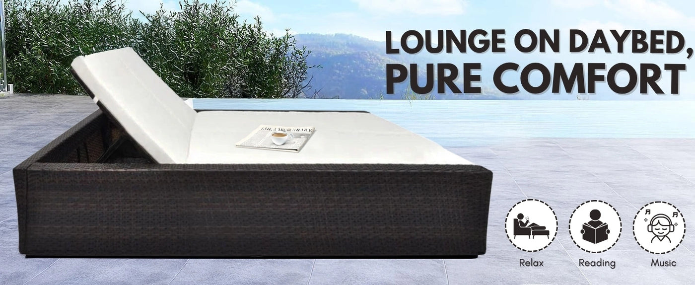 - Versatile Outdoor Use : Perfectly sized and styled for garden, poolside, balcony, porch, or backyard spaces this elegant daybed enhances any setting with a blend of relaxation and luxury.