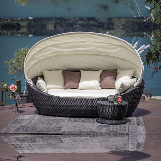 Transform your outdoor space into a luxurious retreat with this Outdoor Rattan Wicker Patio Daybed with Canopy. Crafted from durable, weather-resistant rattan and supported by a rustproof powder-coated metal frame, this stylish daybed is built to withstand sun, rain, and daily wear perfect for year-round use in your poolside, garden, deck, or lawn. Designed for comfort and relaxation, it features thick, high-density cushions with removable, washable covers for easy maintenance. The retractable canopy provides adjustable shade and UV protection, allowing you to relax in comfort whether you're soaking up the sun or enjoying a shaded nap. With its elegant curved design and spacious seating, this daybed offers a resort-like experience at home. Ideal for lounging, reading, or entertaining guests outdoors, it’s the ultimate blend of functionality and style.