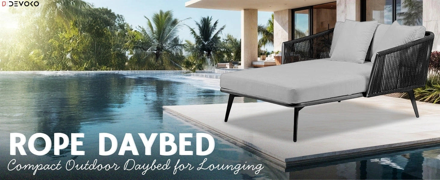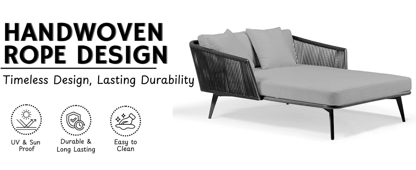 - Durable All-Weather Rope Weave Design : Crafted with premium-grade rope, this daybed is UV-resistant and built to withstand rain, humidity, and intense sun exposure—ideal for year-round outdoor use.