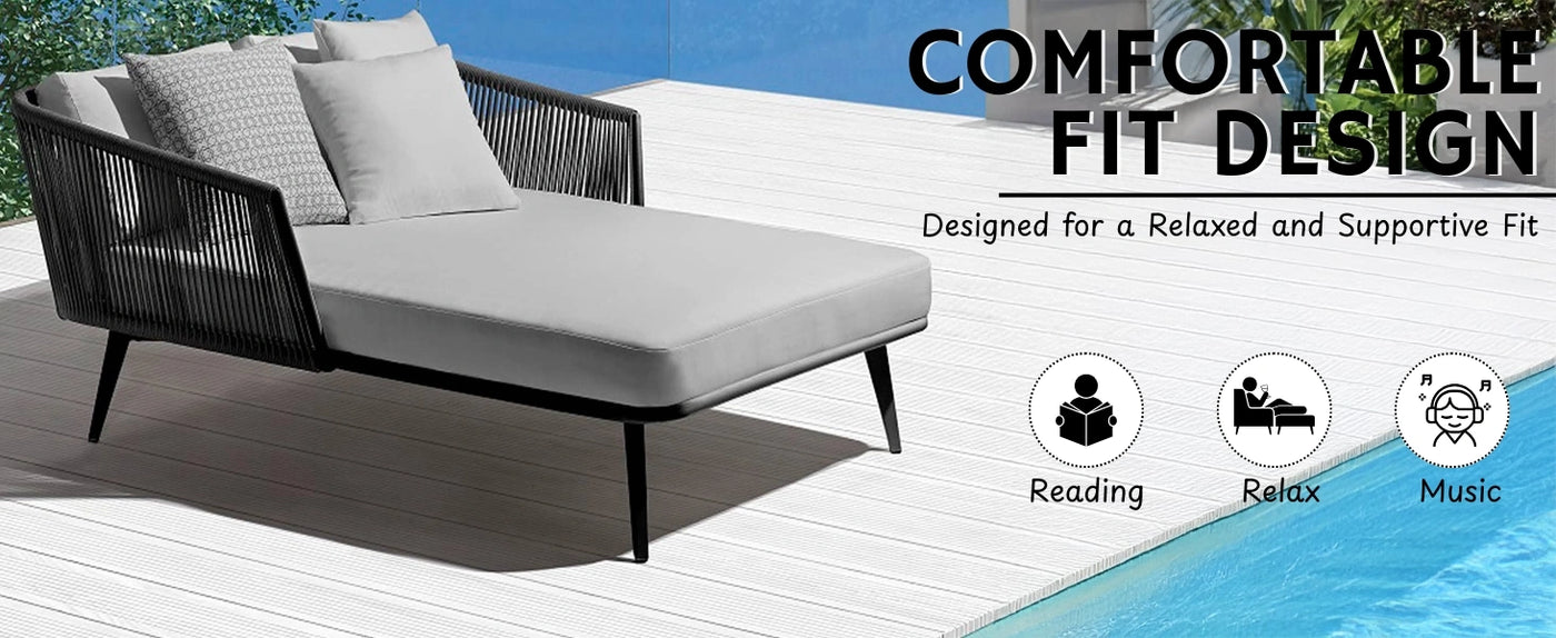 Elevate your outdoor space with this stylish and durable Outdoor Rope Patio Daybed, designed for ultimate relaxation and modern aesthetics. Crafted with a sturdy powder-coated metal frame and handwoven weather-resistant rope, this daybed offers exceptional durability to withstand all seasons. The ergonomically curved high backrest provides excellent support, while the thick, soft cream cushion adds cloud-like comfort for long hours of lounging. Perfect for gardens, terraces, backyards, or balconies, this outdoor daybed combines luxury and practicality in one elegant piece. Its breathable design ensures airflow, preventing heat buildup on sunny days. The removable, washable cushion covers make maintenance easy, keeping your space looking fresh and inviting. Whether you're sunbathing, reading, or hosting guests, this versatile daybed adds a touch of sophistication to any outdoor setting.