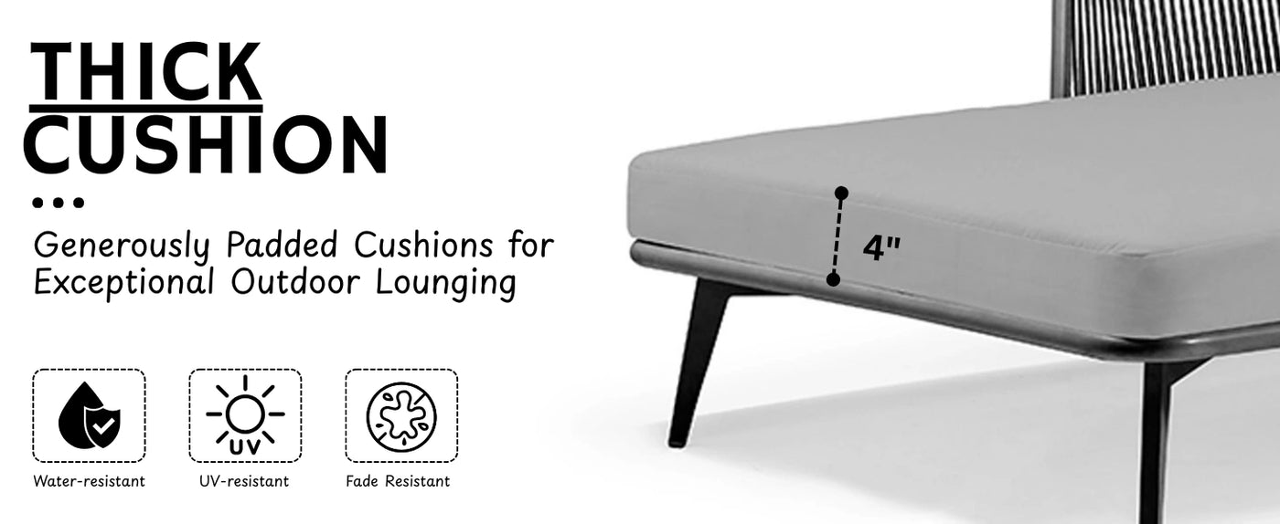 - Water-Resistant Fabric : Comes with thick, soft cushions in a neutral tone. Made from water-resistant and fade-proof fabric, these cushions offer luxurious comfort and easy outdoor maintenance.
