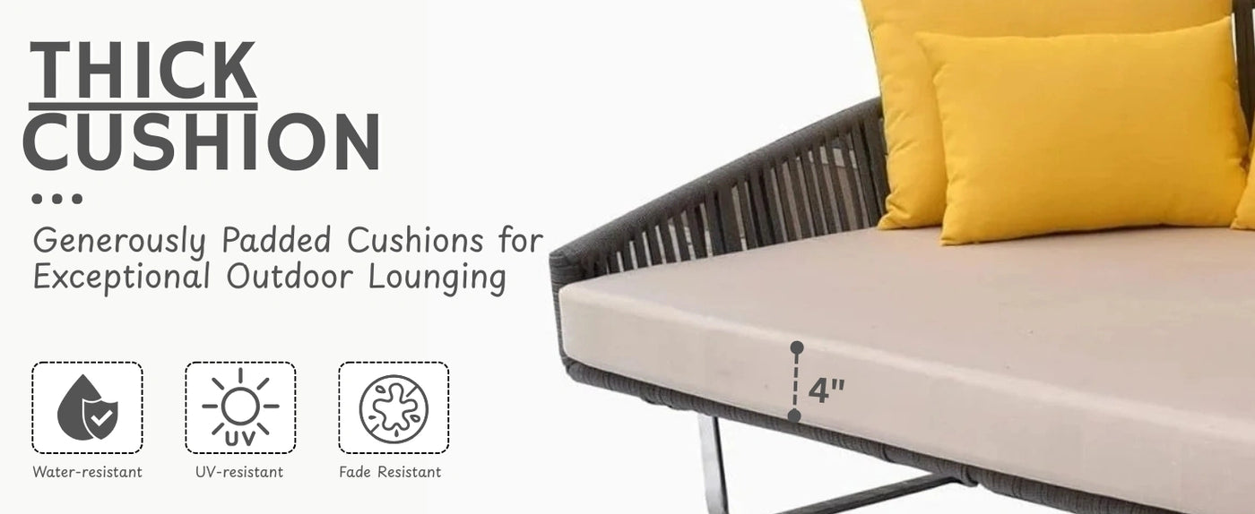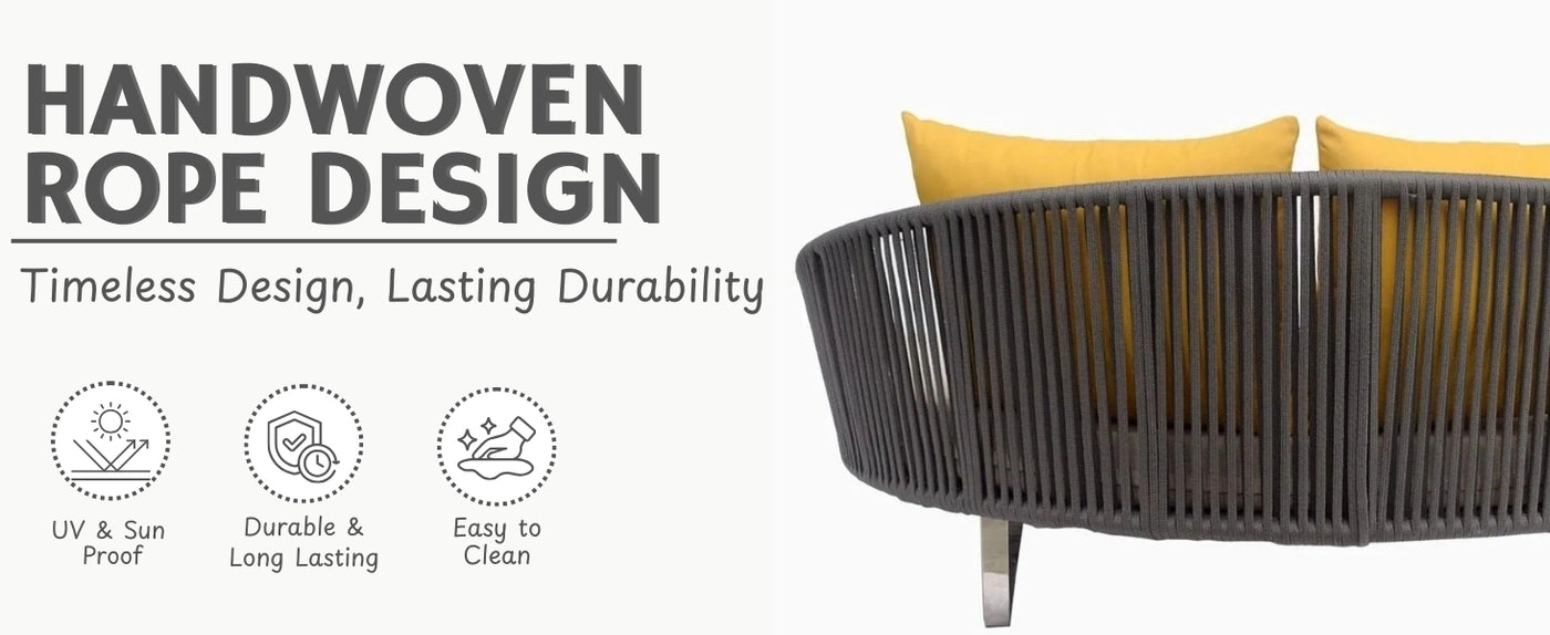 - Durable All-Weather Rope Weave Design : Crafted with premium-grade rope, this daybed is UV-resistant and built to withstand rain, humidity, and intense sun exposure ideal for year-round outdoor use.