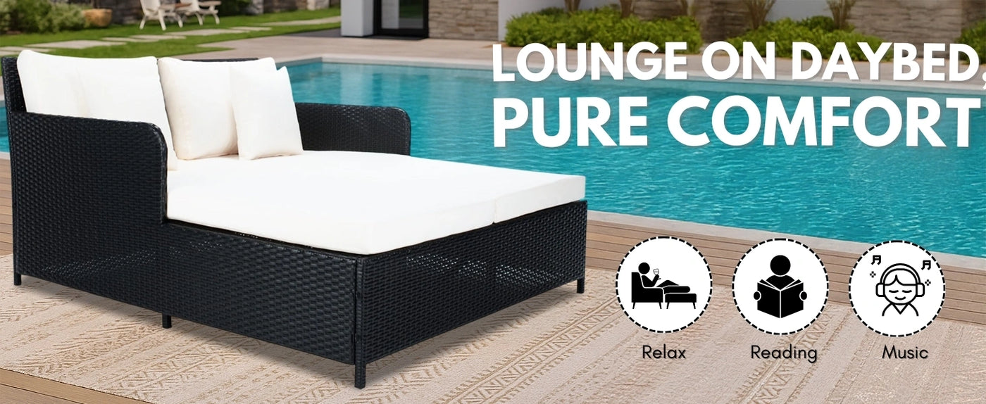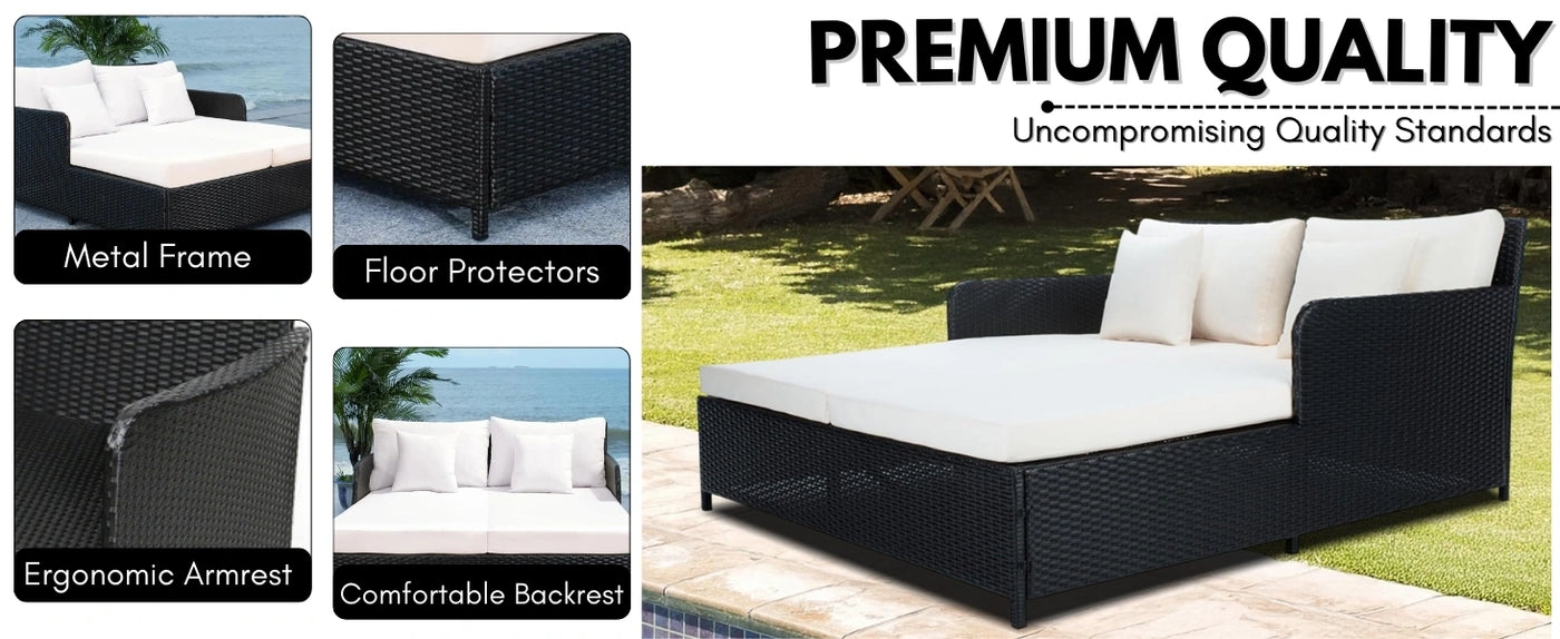Outdoor Patio Double Seater Daybed For Garden, Poolside