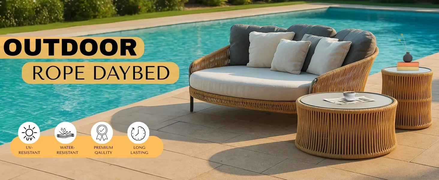 1. Rope Furniture - Clean with mild soap and water, avoid excess moisture, and cover when not in use to prevent wear from sun and rain.