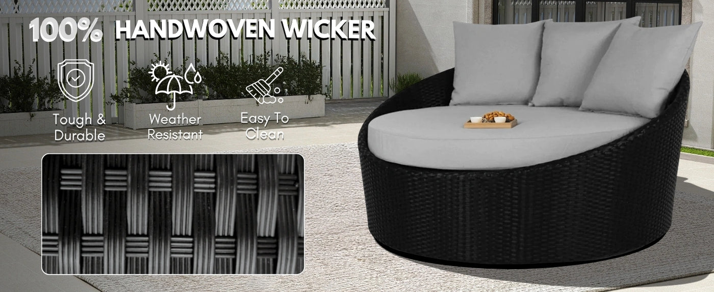 - All-Weather HDPE Rattan Construction : Crafted with high-density polyethylene (HDPE) rattan, known for its superior durability and resistance to fading, cracking, or peeling under sun and rain. This material ensures long-lasting outdoor use in various climates.