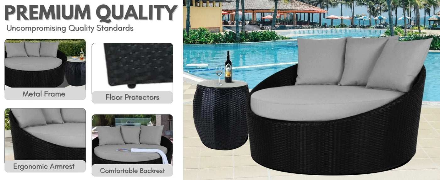 - Modular Design with Spacious Lounging Area : The circular layout of the daybed provides an inviting seating space for two or more people, ideal for socializing or relaxing solo. Some designs include sectional flexibility for customized setups.