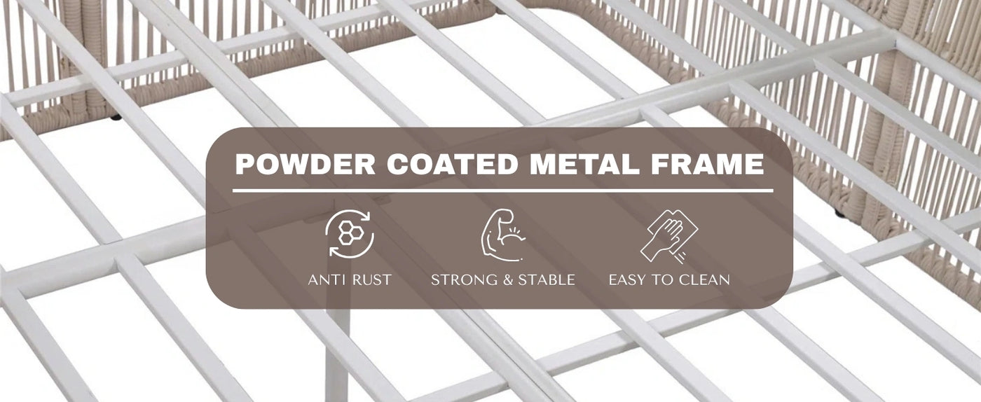- All-Weather Durable Construction : Crafted with a powder-coated metal frame, this set ensures long-lasting strength, rust resistance, and stability in all outdoor conditions ideal for terraces, gardens, or poolside relaxation.