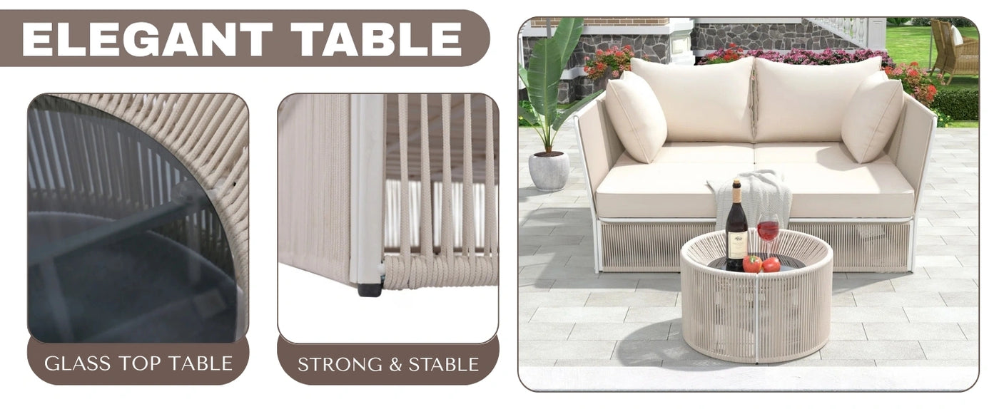 Outdoor Rope 2 Seater Patio Daybed With Side Table