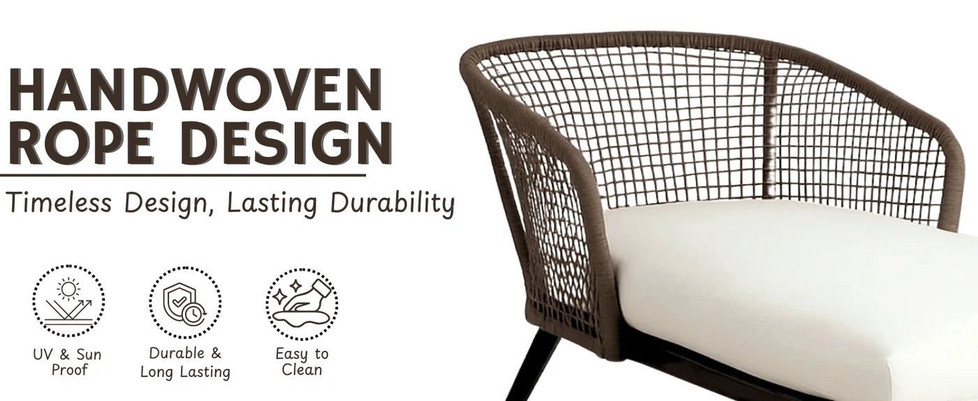 1. Rope Furniture - Clean with mild soap and water, avoid excess moisture, and cover when not in use to prevent wear from sun and rain.