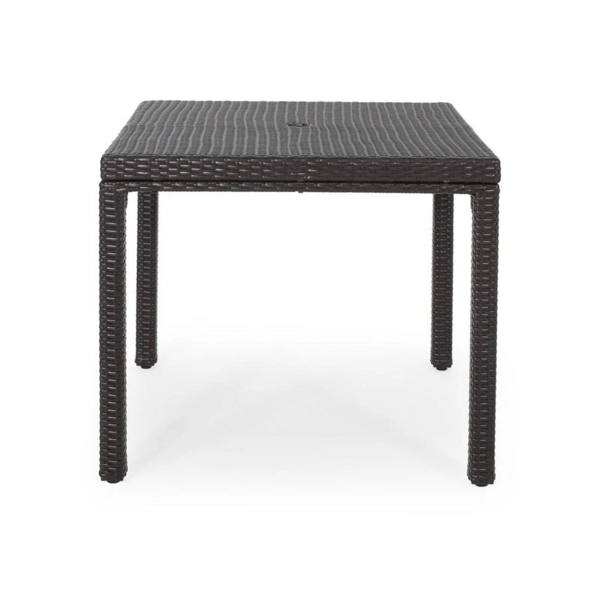 Elevate your outdoor space with this beautifully crafted Dark Brown Patio Table, designed to blend elegance with everyday functionality. Made from handwoven all-weather wicker in a rich dark brown finish, this table adds a touch of sophistication to any patio, garden, balcony, or poolside setting. Its sleek silhouette and neutral tones make it an easy match for any outdoor décor, while its durable construction ensures long-lasting performance through every season. Built on a strong powder-coated metal frame, this patio table is both sturdy and rust-resistant, making it ideal for all-weather use. The woven wicker surface is not only visually appealing but also highly durable, resisting fading and wear over time. The tempered glass tabletop adds a layer of sophistication and is easy to clean—perfect for serving drinks, snacks, or displaying a flower vase to brighten your space. Whether you're hosting a garden party, enjoying a quiet cup of coffee in the morning sun, or adding a functional accent next to your lounge chair, this table delivers convenience and charm in equal measure. It’s lightweight for easy mobility, yet stable enough to handle daily outdoor use with ease.