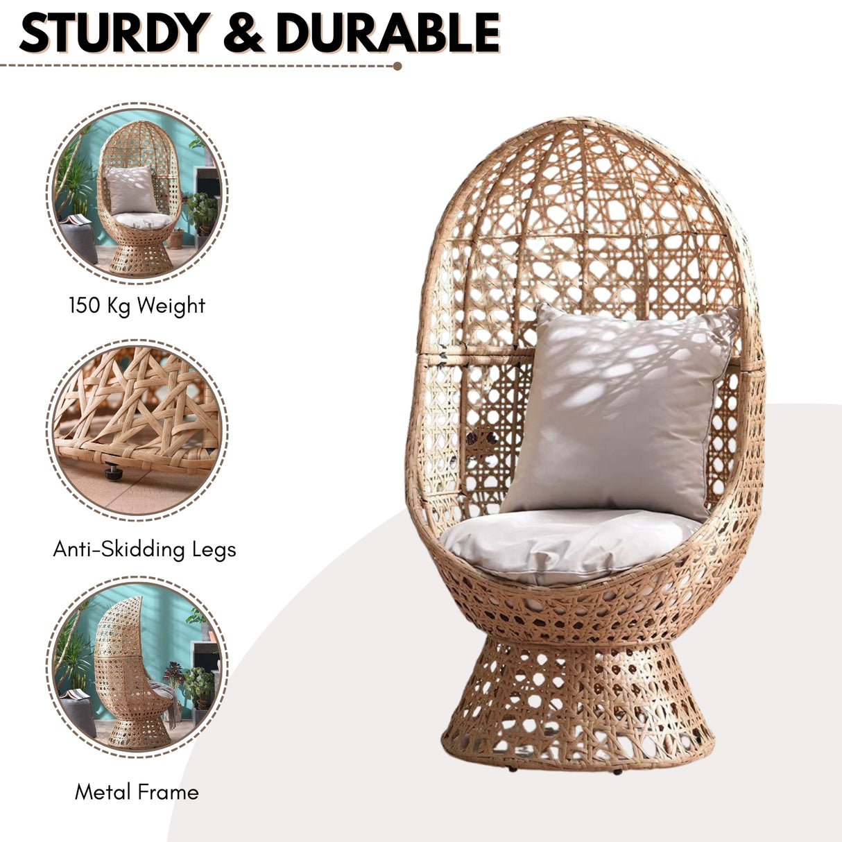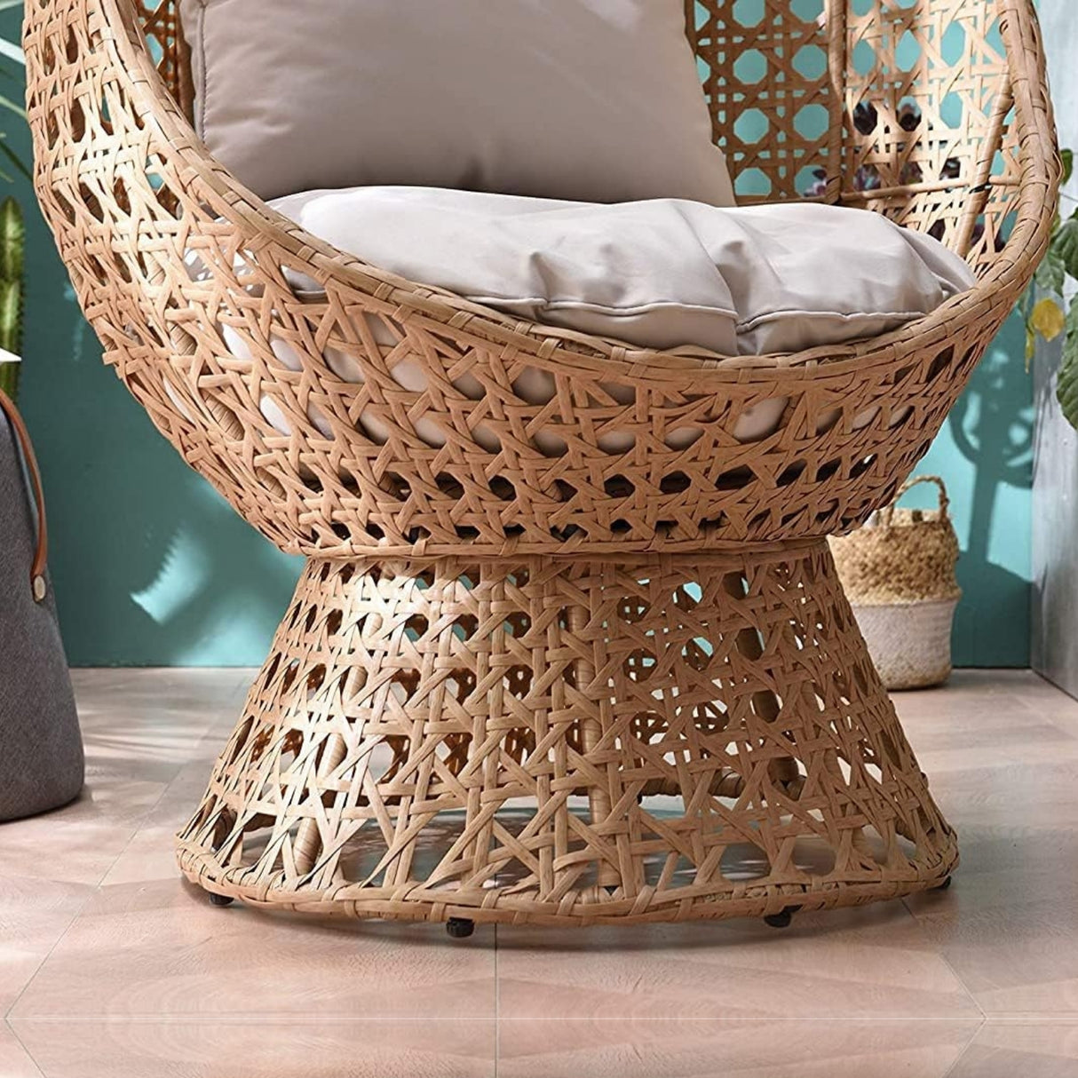 - Stylish Cocoon Design : Handwoven beige wicker creates a chic and inviting outdoor centerpiece.