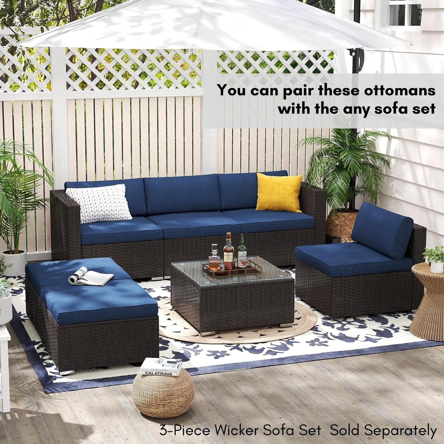 Upgrade your patio, garden, balcony, or poolside area with this elegant Set of 2 Outdoor Wicker Ottomans, designed for style, comfort, and ultimate functionality. Handwoven from durable, weather-resistant wicker over a sturdy powder-coated metal frame, these ottomans are built to endure the elements while enhancing your outdoor decor with a modern, natural look. Each ottoman includes a removable cushion with a zippered, water-resistant cover, offering plush comfort while ensuring easy maintenance. The cushions are thick yet breathable perfect for long hours of lounging in the sun or relaxing under the stars.