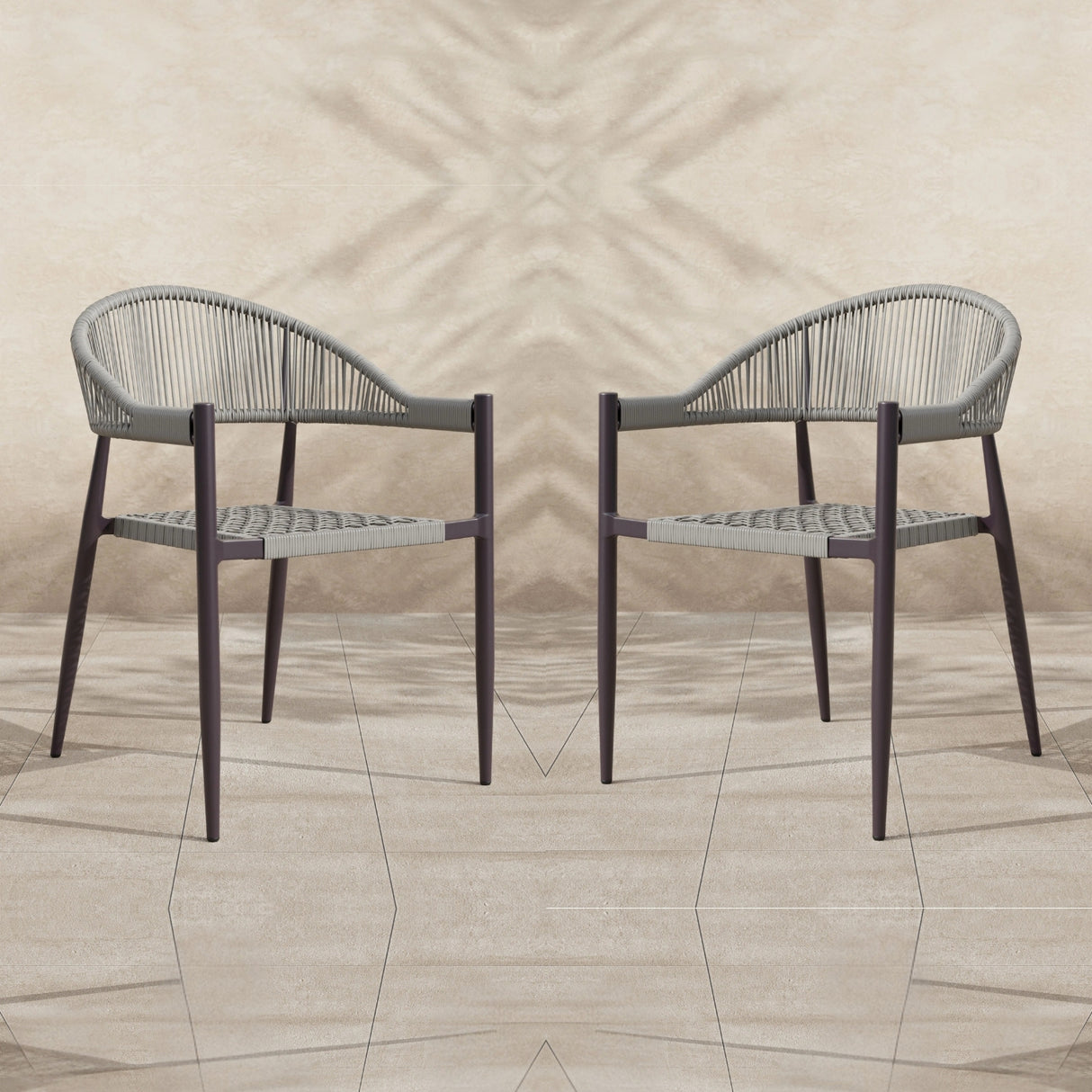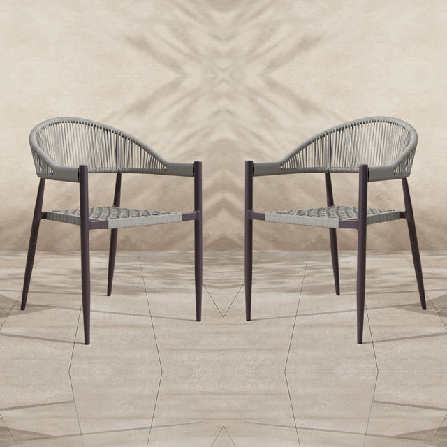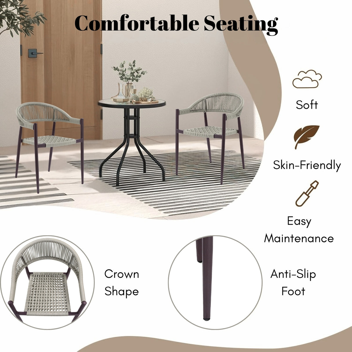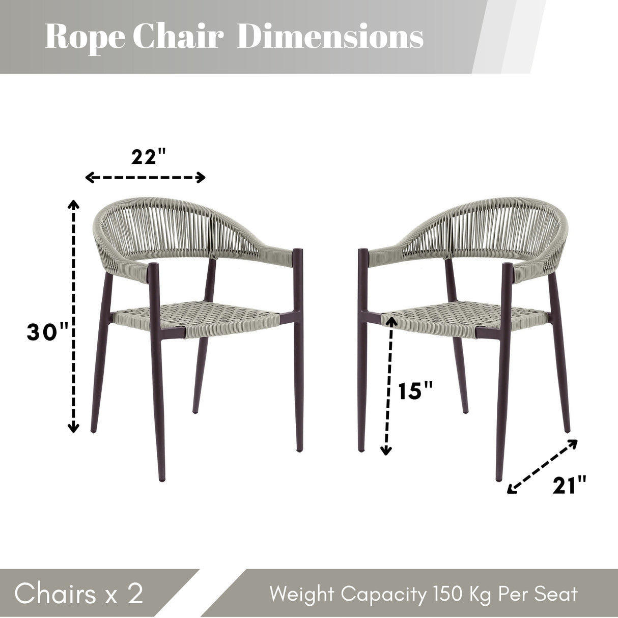Elevate your outdoor dining experience with these stylish rope dining chairs for unmatched comfort. Expertly crafted with a powder-coated metal frame and handwoven weather-resistant rope, these chairs are built to withstand the elements while maintaining their elegant appeal. The breathable rope design ensures proper airflow, keeping you cool during warm days. Perfect for gardens, decks, lawns, and poolside settings, these chairs blend contemporary charm with durable performance. Their lightweight yet sturdy construction allows for easy mobility without compromising stability, making them a versatile addition to any outdoor space.