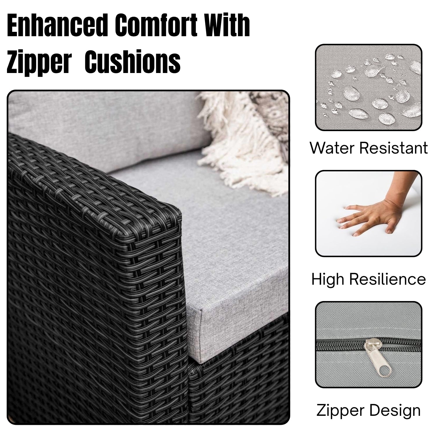 6-Piece All-Weather Wicker Patio Furniture Set (Black/Grey)