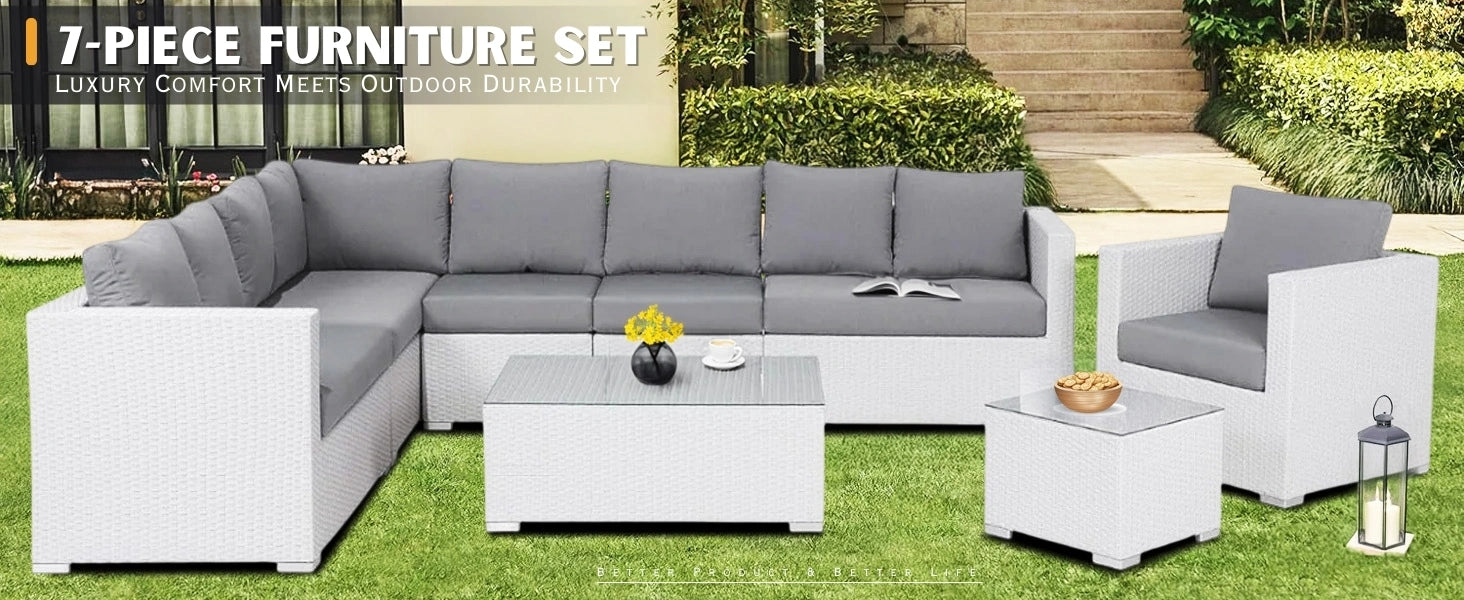 7-Piece L-Shaped Outdoor Sectional Sofa