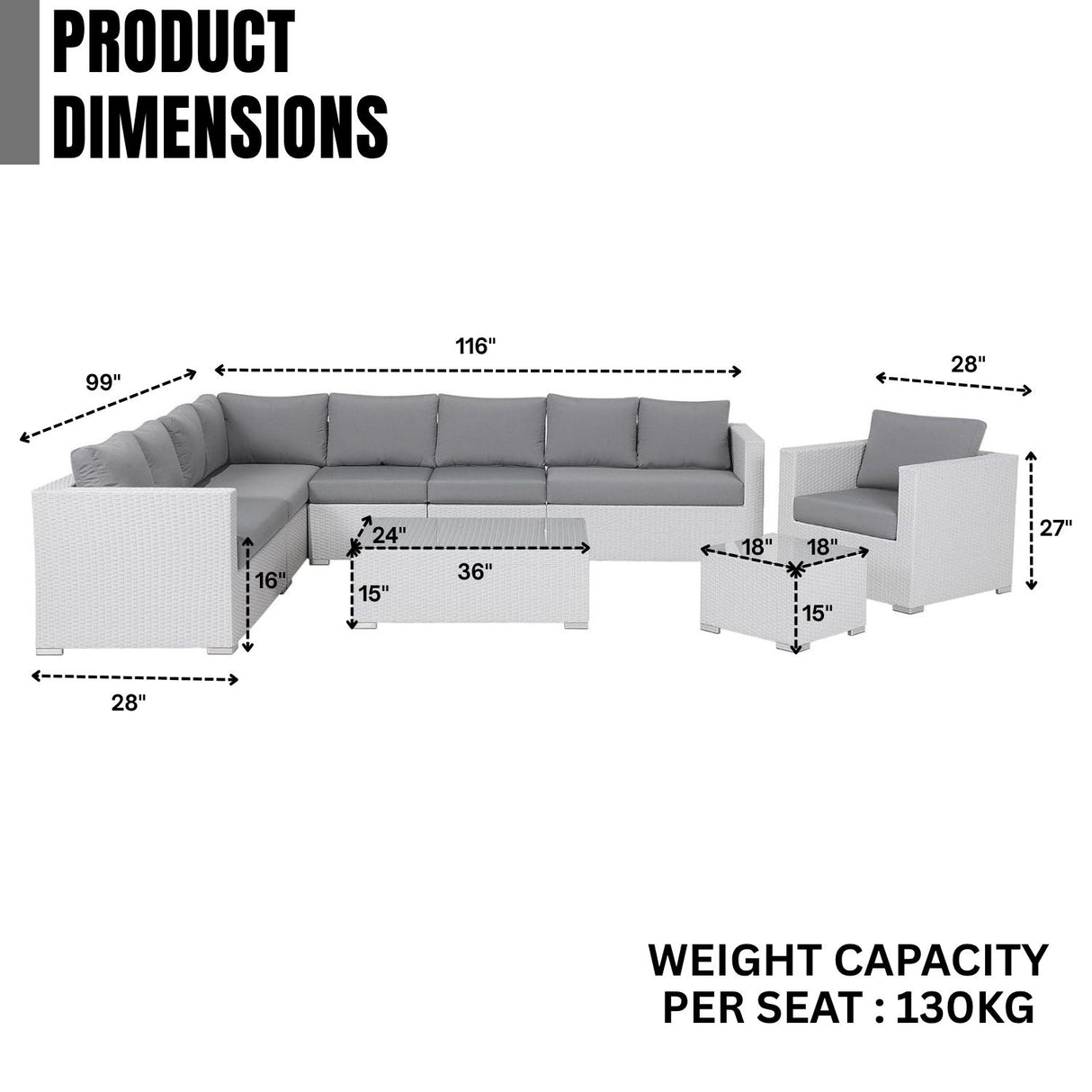 - 1 Five Seater Sofa Dimension: 116″Lx28″Wx27″H