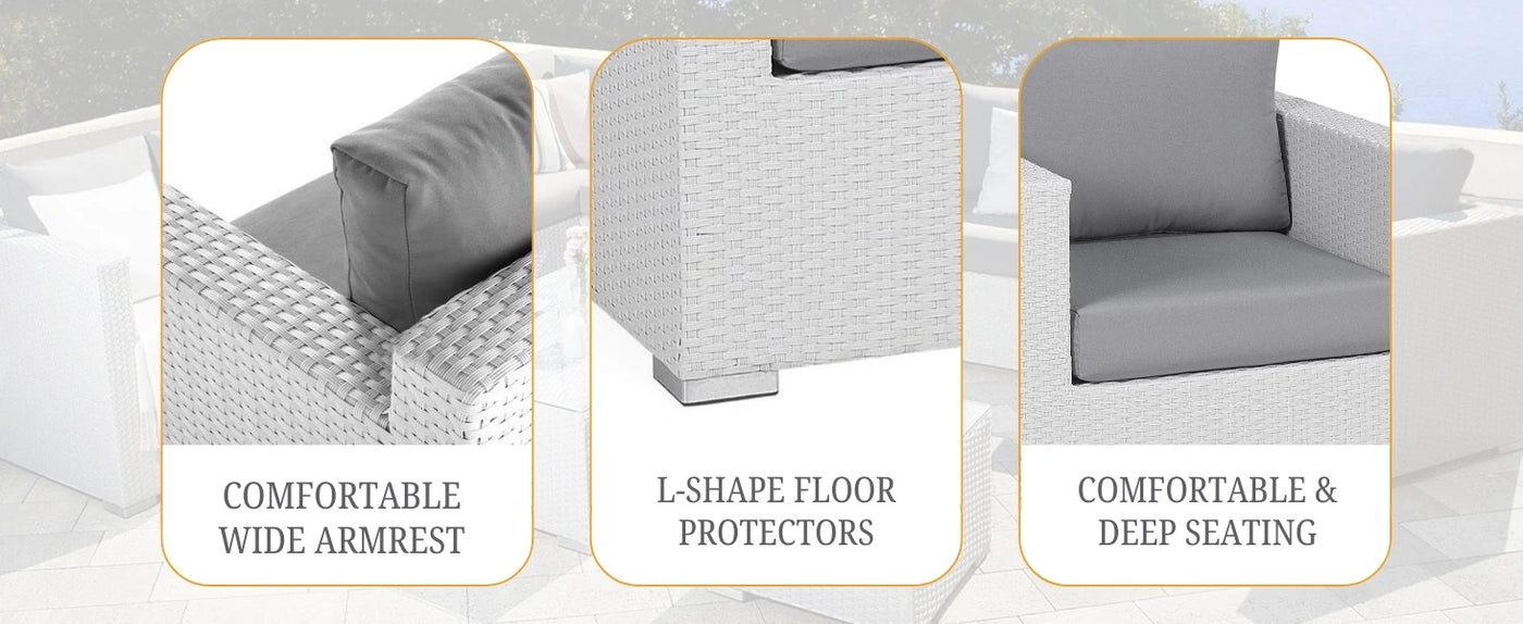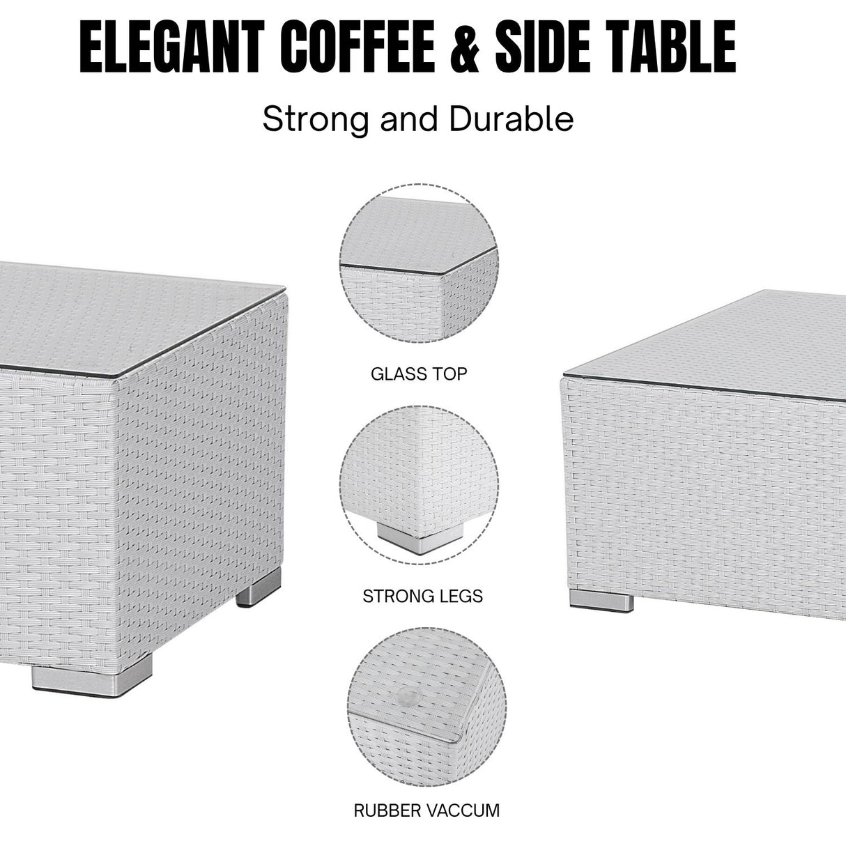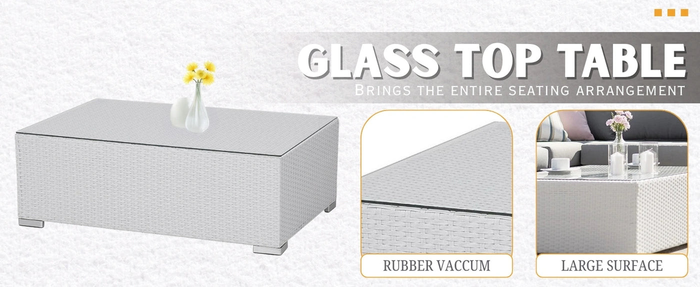 - Stylish Glass-Top Center & Side Tables : Includes a sleek and sturdy center & side table with a glass top perfect for serving drinks, snacks, or decor items outdoors.