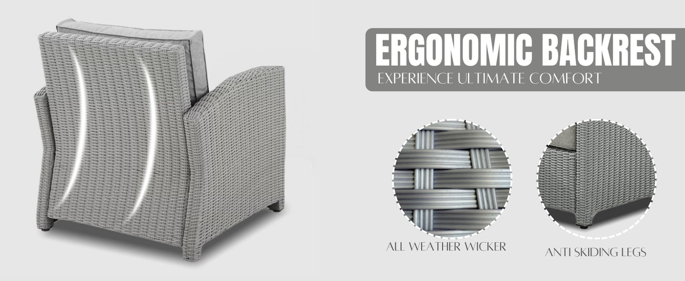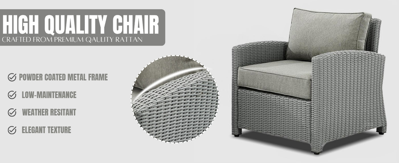 • Durable All-Weather Wicker Construction : Crafted with handwoven high-quality HDPE rattan wicker that is UV-resistant, waterproof, and fade-resistant—built to withstand year-round outdoor conditions.