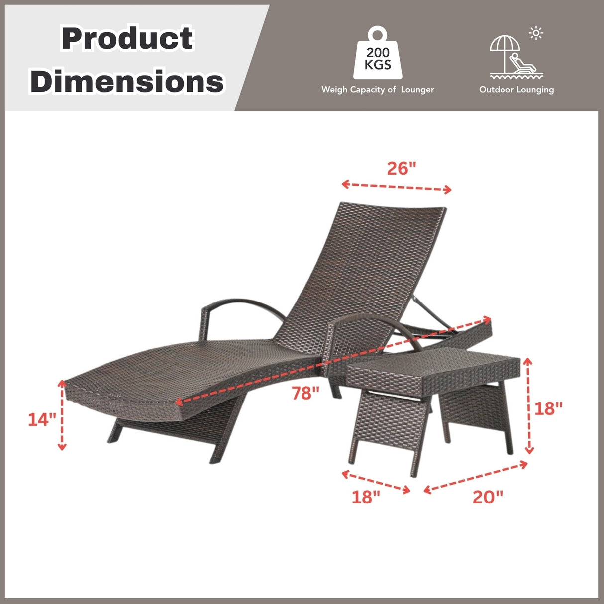 Relax in style with this Outdoor All-Weather HDPE Wicker Rattan Sun lounger Recliner, designed for ultimate comfort and lasting durability. Perfect for your garden, poolside, beach, balcony, terrace, or deck, this sleek sun lounger features a high-quality HDPE rattan weave that’s UV-resistant, waterproof, and built to withstand all seasons. The adjustable reclining backrest lets you find your ideal lounging position, while the ergonomic design offer superior comfort and support. Paired with a matching side table, it’s perfect for keeping your drinks, snacks, or book within reach. The rustproof powder-coated metal frame ensures long-lasting stability and strength, while the elegant rattan finish adds a modern, natural charm to any outdoor setting. Whether sunbathing by the pool or reading on the balcony, this weather-resistant lounge chair and side table set blends functionality, aesthetics, and outdoor resilience in one must-have patio essential.