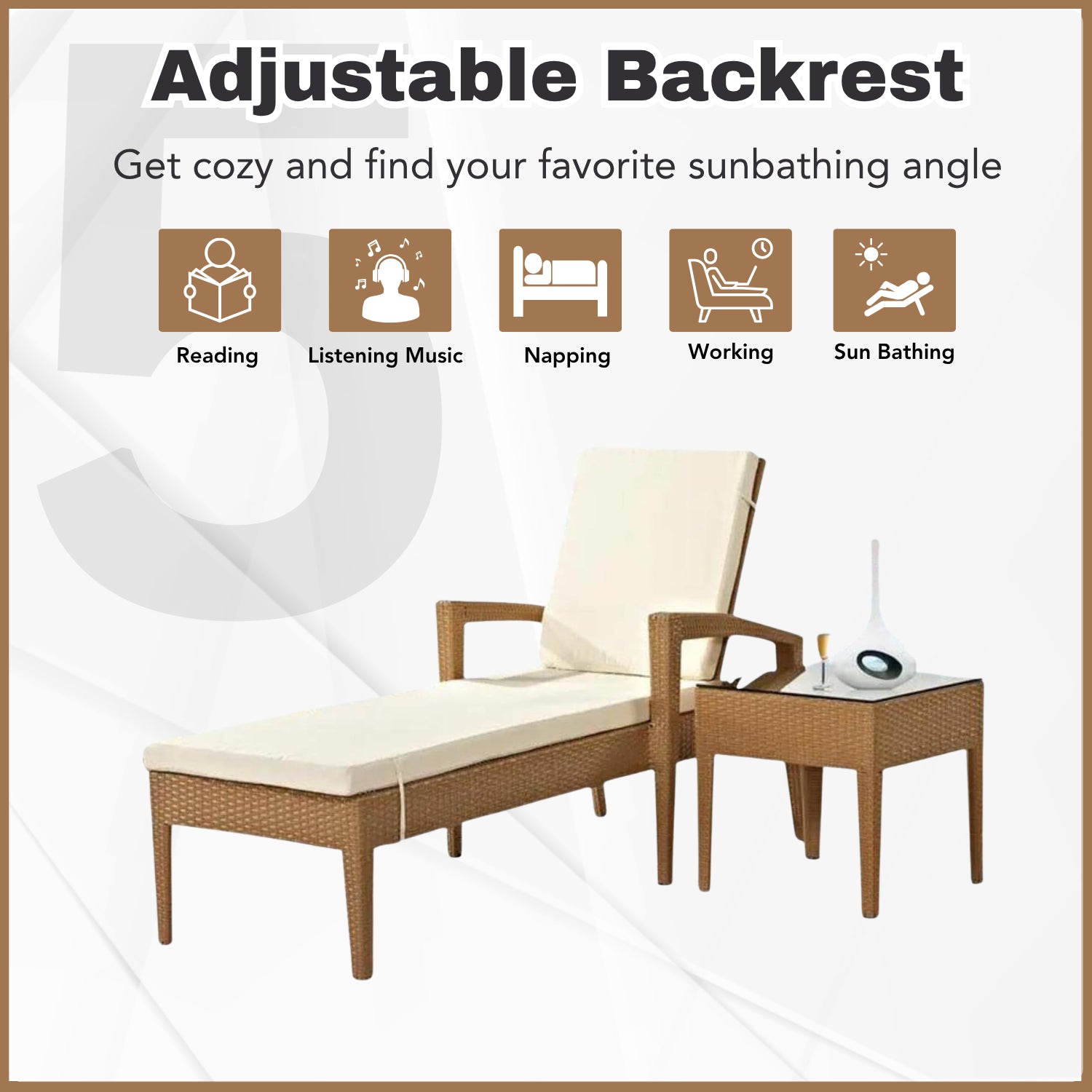 Upgrade your patio, balcony, poolside, or beach retreat with our Outdoor Lounge Chair with Thick Cushions & Matching Table a perfect blend of elegance, comfort, and practicality. Crafted with durable handwoven rattan and supported by a powder-coated metal frame, this stylish furniture set is designed to endure the elements while offering a modern aesthetic that enhances any outdoor setting. Chair features a deep seat and an ergonomic backrest, paired with ultra-thick, plush cushions that provide exceptional comfort for hours of relaxation. Whether you’re soaking up the sun, sipping morning coffee, or enjoying evening conversations, this set supports every moment with luxurious ease. The matching rattan table adds functional charm ideal for placing drinks, snacks, or décor accents making it both a convenient and aesthetic addition to your outdoor living space. Weather-resistant materials ensure this set remains vibrant and sturdy through all seasons, while the easy-to-clean cushion covers make maintenance a breeze. Lightweight yet robust, you can easily move and arrange the chairs and table to suit any gathering or mood.