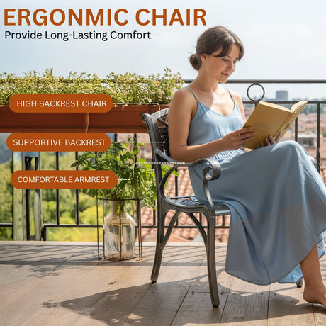 Outdoor 3-Piece Cast Aluminum Patio Bistro Set