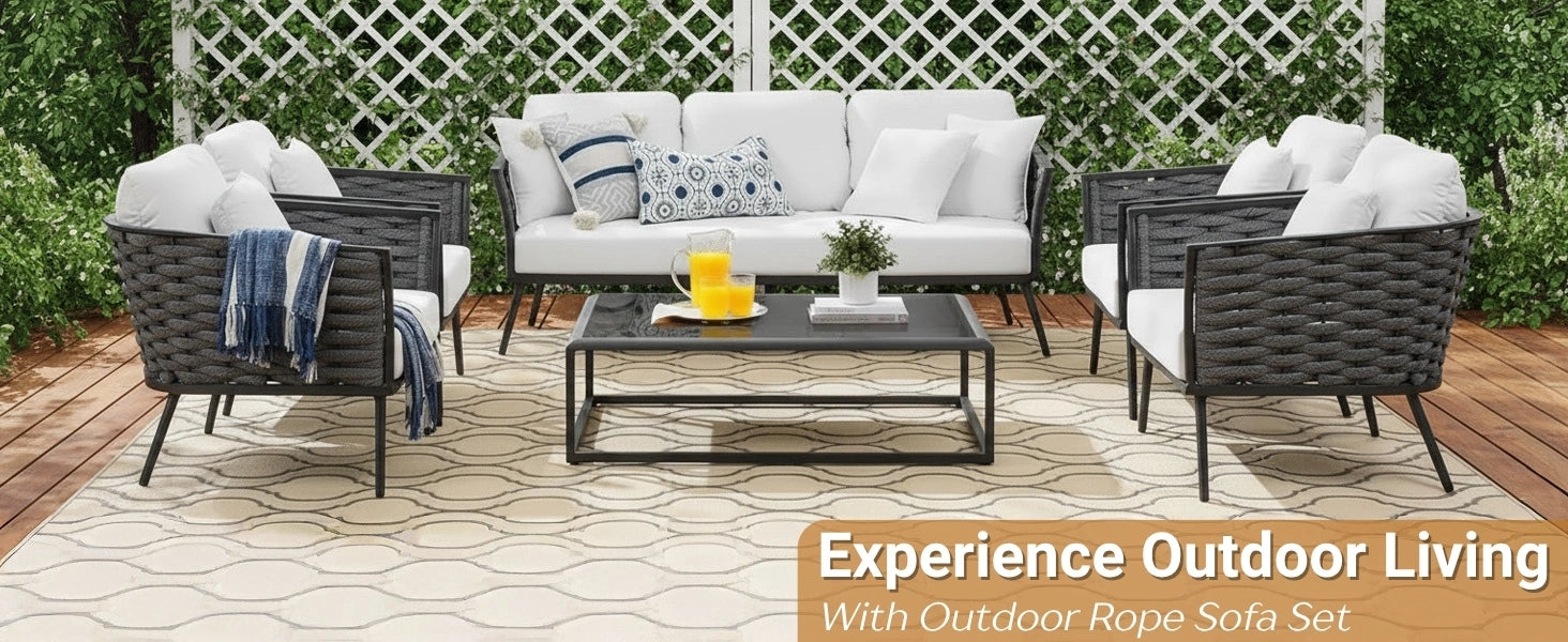 1. Rope Furniture - Clean with mild soap and water, avoid excess moisture, and cover when not in use to prevent wear from sun and rain.