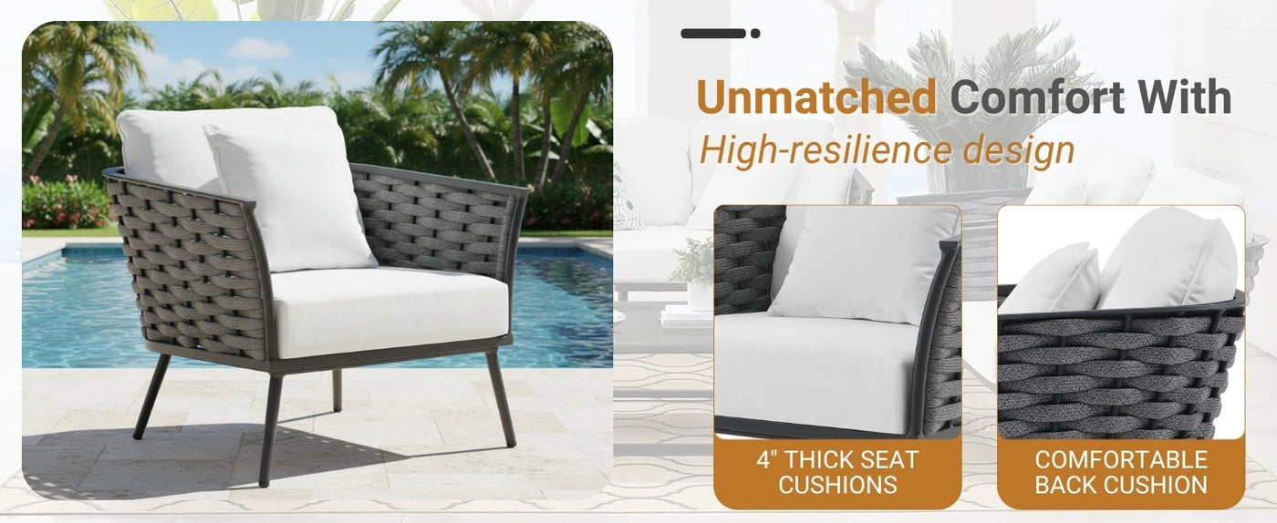 6-Piece Outdoor Rope Sofa Set (Grey & White)