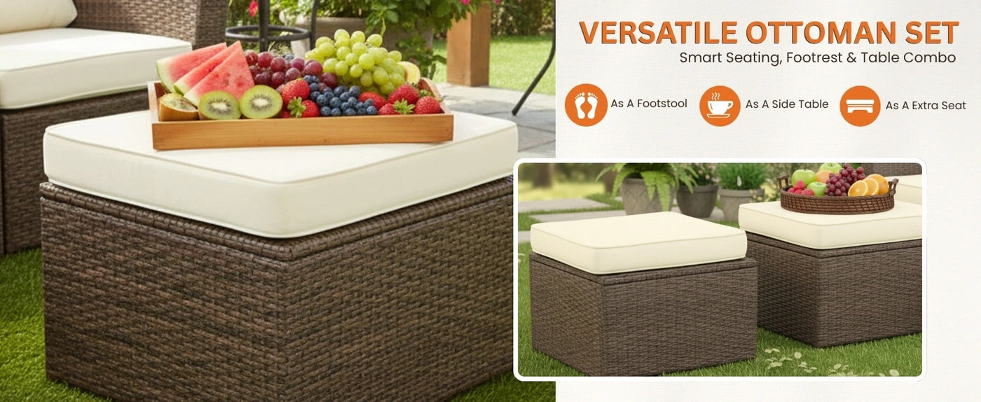 - 2 Ottomans Dimensions: 18″L×18″W×13″H