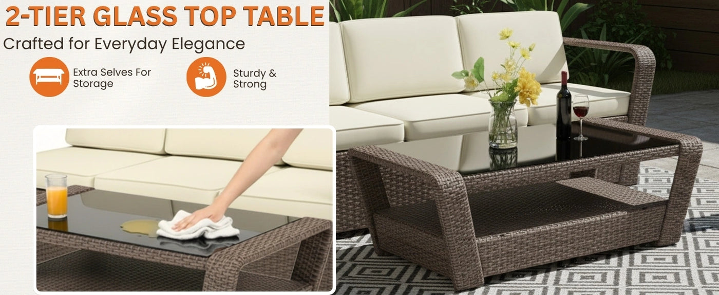 1. Rope Furniture - Clean with mild soap and water, avoid excess moisture, and cover when not in use to prevent wear from sun and rain.