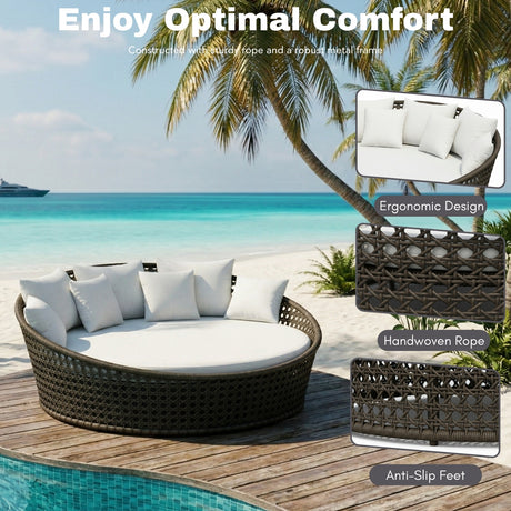 Outdoor Grey Rope Patio Daybed with Comfortable...