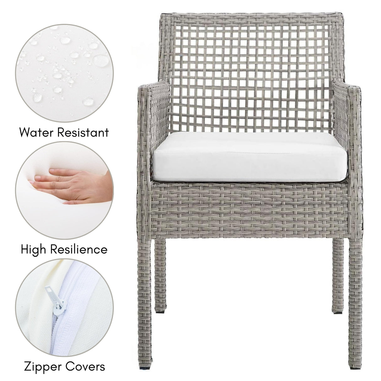 Elevate your outdoor dining experience with our expertly crafted Rattan Wicker Dining Chairs, designed for lasting comfort and style. Constructed with a durable powder-coated metal frame, these chairs offer exceptional strength and stability, making them ideal for everyday use in gardens, decks, lawns, or poolside settings. The handwoven all-weather HDPE rattan is UV-resistant and built to withstand harsh sun, rain, and humidity without fading or cracking ensuring long-term performance and beauty. Each chair features a high backrest and ergonomic armrests, promoting a naturally comfortable sitting posture. The addition of soft, breathable cushions with removable, water-resistant covers ensures maximum comfort and easy maintenance. Their sleek woven design and neutral tones blend seamlessly with any outdoor décor, adding a touch of modern elegance to your space. Whether you're enjoying casual breakfasts or evening gatherings, these lightweight yet sturdy dining chairs offer the perfect balance of durability, comfort, and visual appeal, making them a smart addition to any outdoor setting.