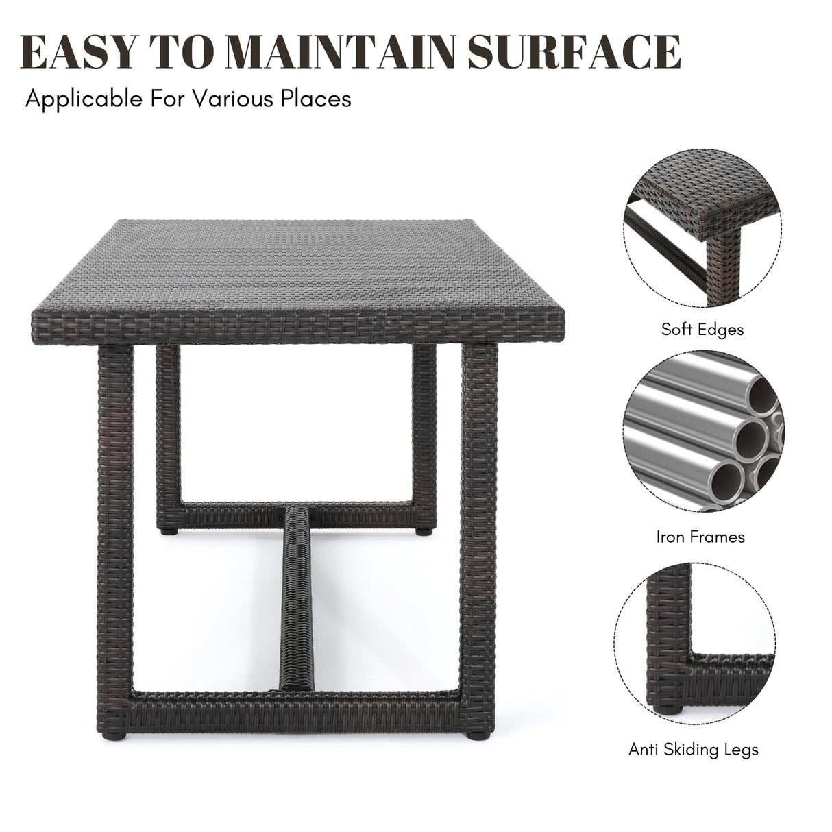 - Square Tabletop : Features a sleek wicker tabletop that’s easy to clean, scratch-resistant, and adds a modern touch to your patio or garden dining experience.