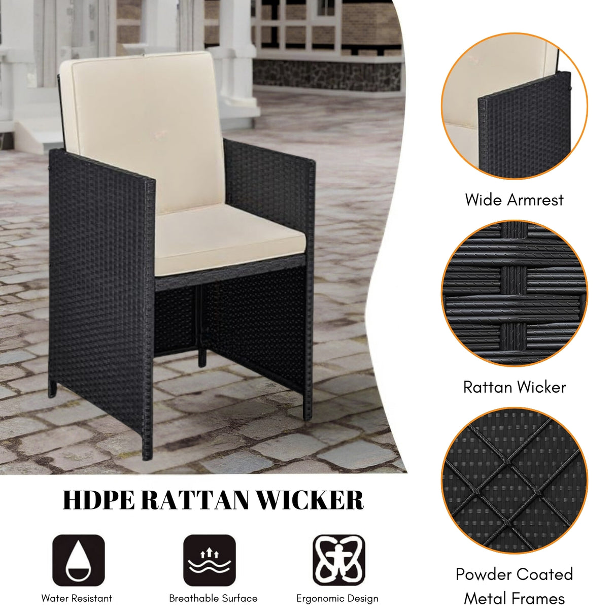 - All-Weather Handwoven Rattan Construction : Crafted from premium-quality, weather-resistant HDPE rattan that withstands sun, rain, and humidity for year-round outdoor use.