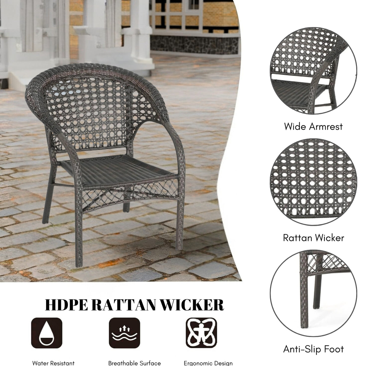 - All-Weather Resistant Wicker Construction : Crafted with premium hand-woven HDPE rattan, this dining set is designed to withstand rain, sun, and humidity without fading or cracking ideal for year-round outdoor use.