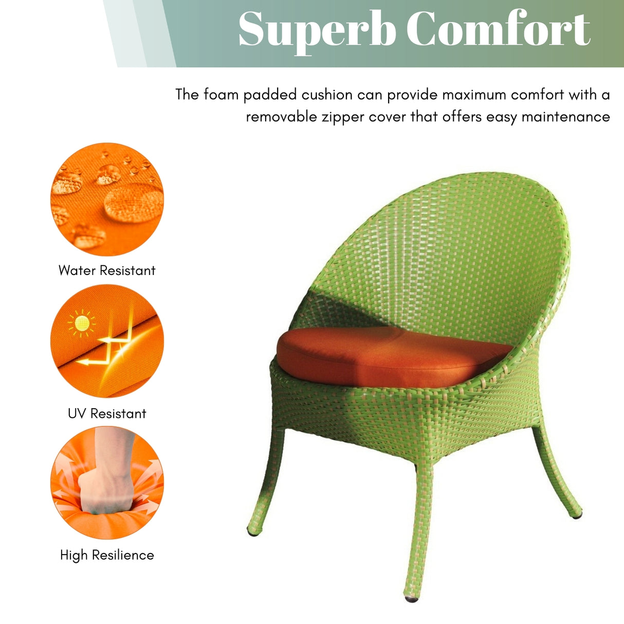 Upgrade your outdoor gatherings with this stylish 5-Piece Outdoor Patio Dining Set, featuring four handwoven rattan chairs and table. Built for both durability and comfort, this all-weather set is perfect for your balcony, poolside, garden, or backyard. The weather-resistant rattan ensures year-round use, while the powder-coated metal frame provides long-lasting strength and stability. Soft seat cushions offer added comfort for relaxing meals and conversations outdoors. The compact design fits well in smaller spaces while maintaining a modern, elegant look. Whether you're hosting friends or enjoying a quiet meal outdoors, this dining set offers a perfect blend of style, durability, and functionality for any patio setting.
