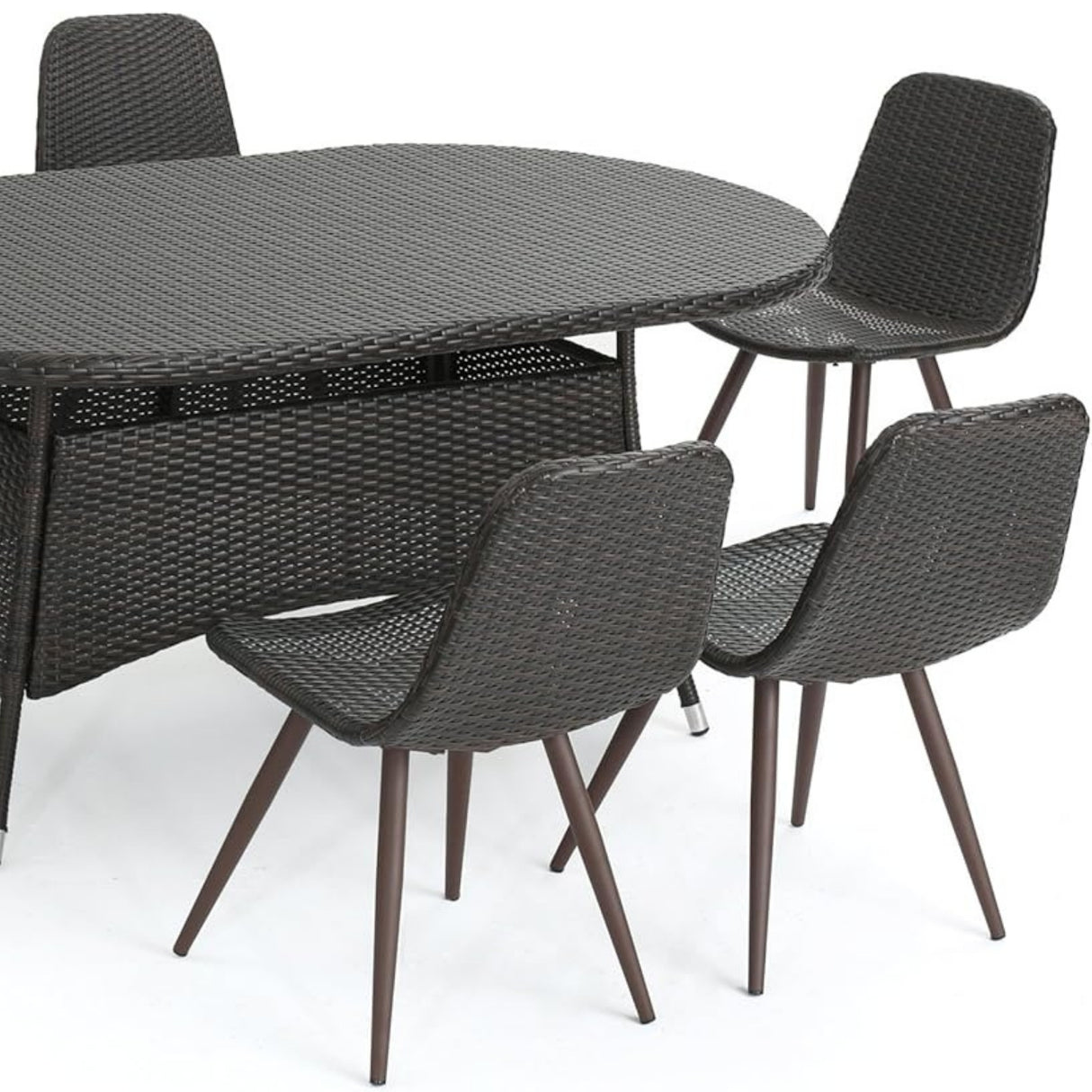 Upgrade your outdoor gatherings with this stylish 7-Piece Outdoor Patio Dining Set, featuring four handwoven rattan chairs and a sleek wicker-top table. Built for both durability and comfort, this all-weather set is perfect for your balcony, poolside, garden, or backyard. The weather-resistant rattan ensures year-round use, while the powder-coated metal frame provides long-lasting strength and stability. The compact design fits well in smaller spaces while maintaining a modern, elegant look. Whether you're hosting friends or enjoying a quiet meal outdoors, this dining set offers a perfect blend of style, durability, and functionality for any patio setting.