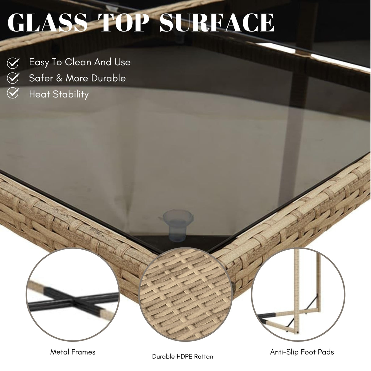 - All-Weather HDPE Rattan Construction : Crafted from handwoven high-quality wicker that’s UV-resistant, fade-resistant, and built to withstand rain, sun, and outdoor wear year-round.