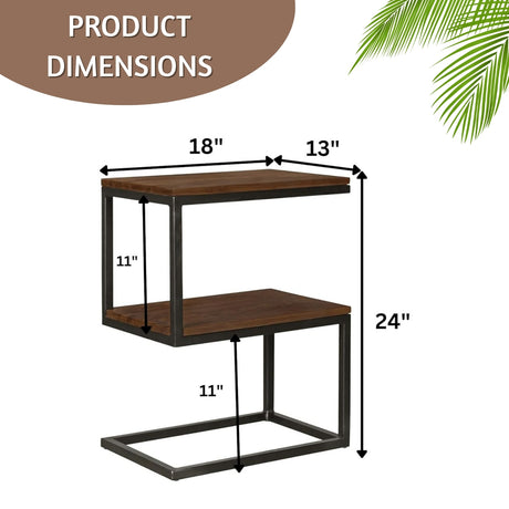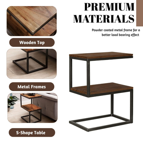 Solid Sheesham Wood S-Shape Bedside Corner Side...