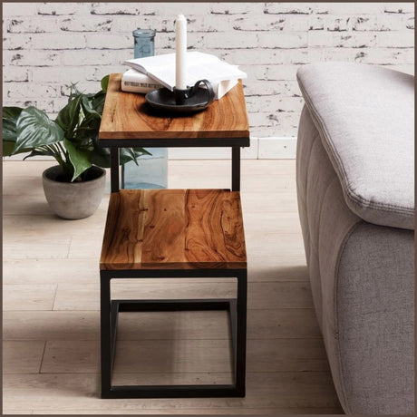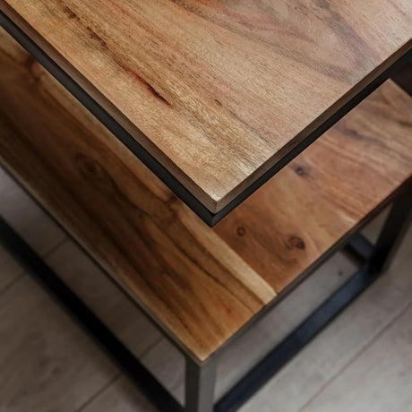 Solid Sheesham Wood Top 2-Tier Coffee Table