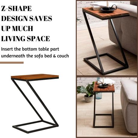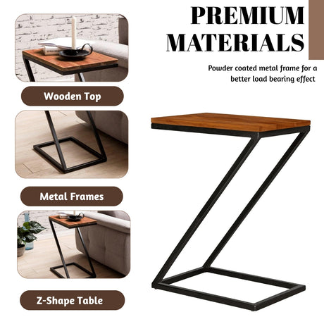 Solid Sheesham Wood Bedside Z-Shape Corner Side...