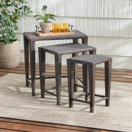 3-Piece Wicker Garden Bistro Set in Dark Brown