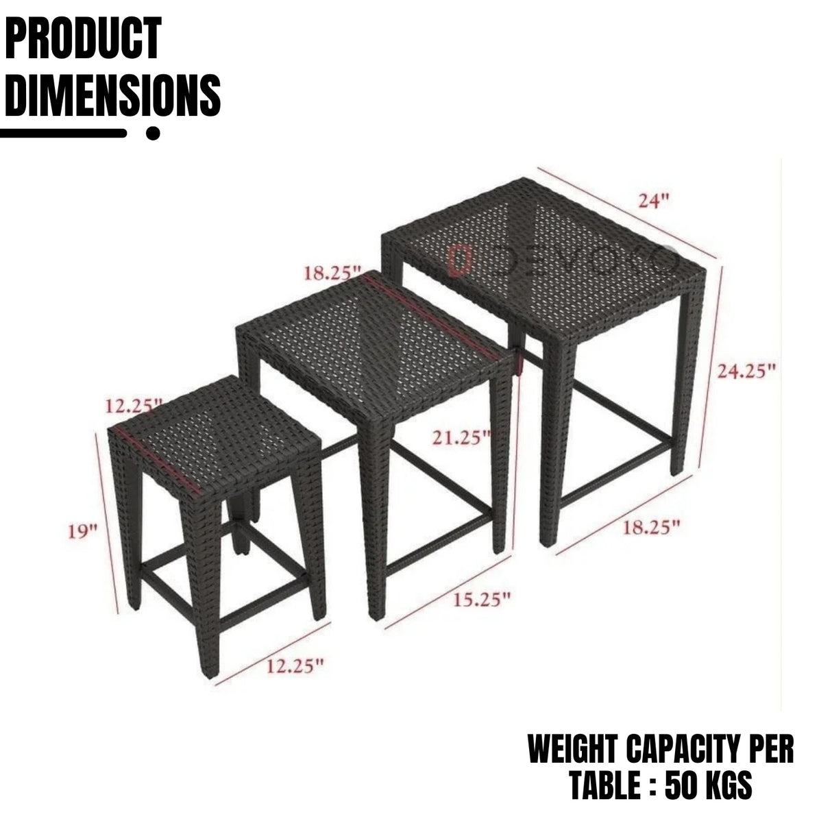 - Space-Saving Nesting Design : Thoughtfully designed to stack or nest together, this 3-piece table set maximizes floor space perfect for compact patios, balconies, or indoor corners.