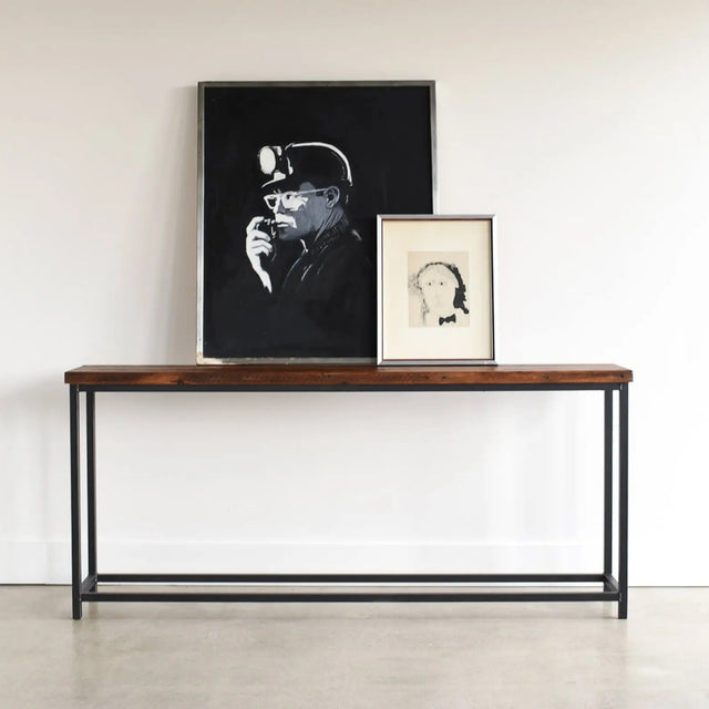 Elevate your living space with this premium Console Table, blending the rich warmth of natural Sheesham wood with the bold stability of a powder-coated metal frame. Designed for both modern and rustic interiors, this piece serves as a stylish focal point in entryways, living rooms, or behind sofas. The solid Sheesham wood top, known for its distinctive grain patterns and natural finish, offers timeless elegance and durability. It is expertly hand-finished to preserve the unique texture of the wood while providing a smooth, functional surface. The metal base adds a minimalist industrial edge, ensuring lasting support with a sturdy, wobble-free structure. Whether used to display décor, organize essentials, or hold lighting elements, this console table is both visually appealing and highly practical. Its sleek silhouette allows it to blend seamlessly with any décor style—from contemporary lofts to traditional homes—offering a perfect combination of strength, utility, and artisanal beauty.