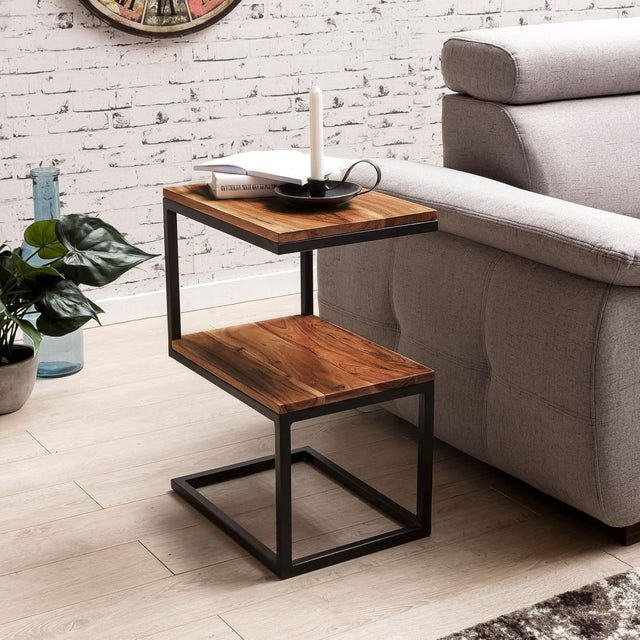 Solid Sheesham Wood S-Shape Bedside Corner Side Table