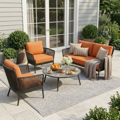 4-Piece Outdoor Rope Sofa Set With Glass Top Table